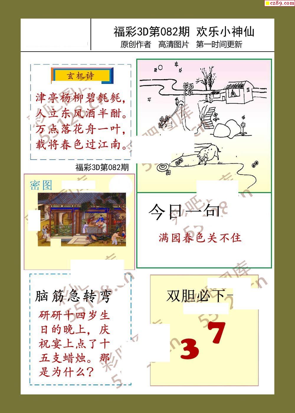 首页 > 福彩3D图谜 > 26年福彩3d082期欢乐小神仙预测图
