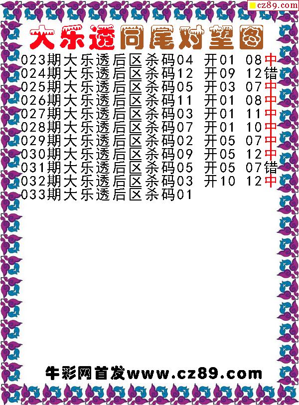 大乐透2026033期同尾对望后区杀号图谜 10中8-「3D开机号」今天-试机号-3d近10期开机号-福彩网