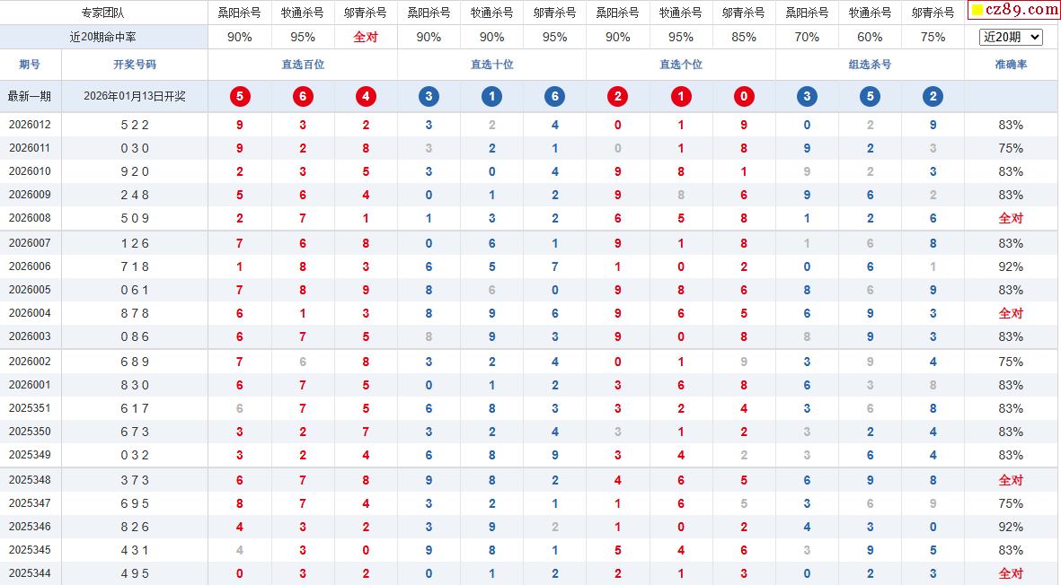 26年013期彩宝贝专家体彩P3杀号定码图表